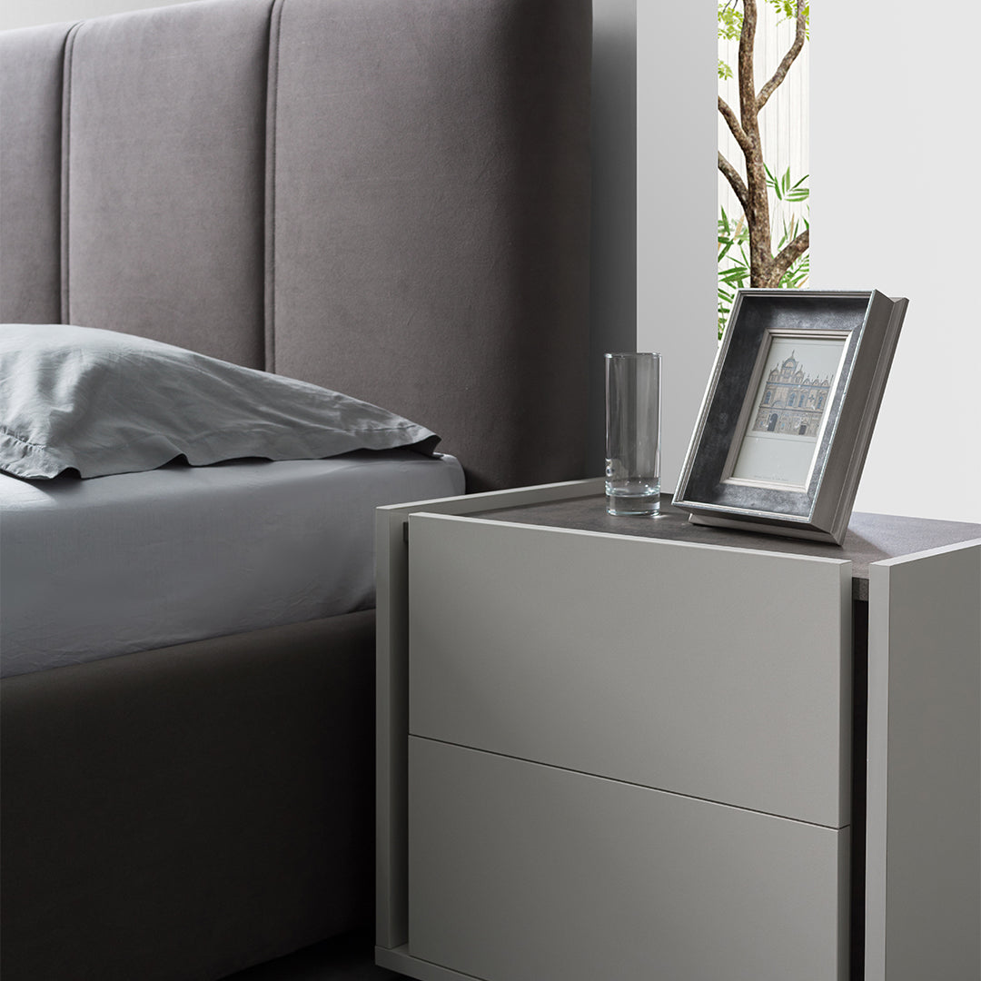 La Camera da Letto Ilaria è la soluzione completa per trasformare il tuo spazio in un'oasi di comfort e stile. Realizzata in melaminico grigio, questa collezione coordinata comprende un ampio armadio per riporre ogni cosa con eleganza, un letto contenitore che massimizza lo spazio disponibile, una comò funzionale, comodini pratici e una specchiera per completare l'arredamento.